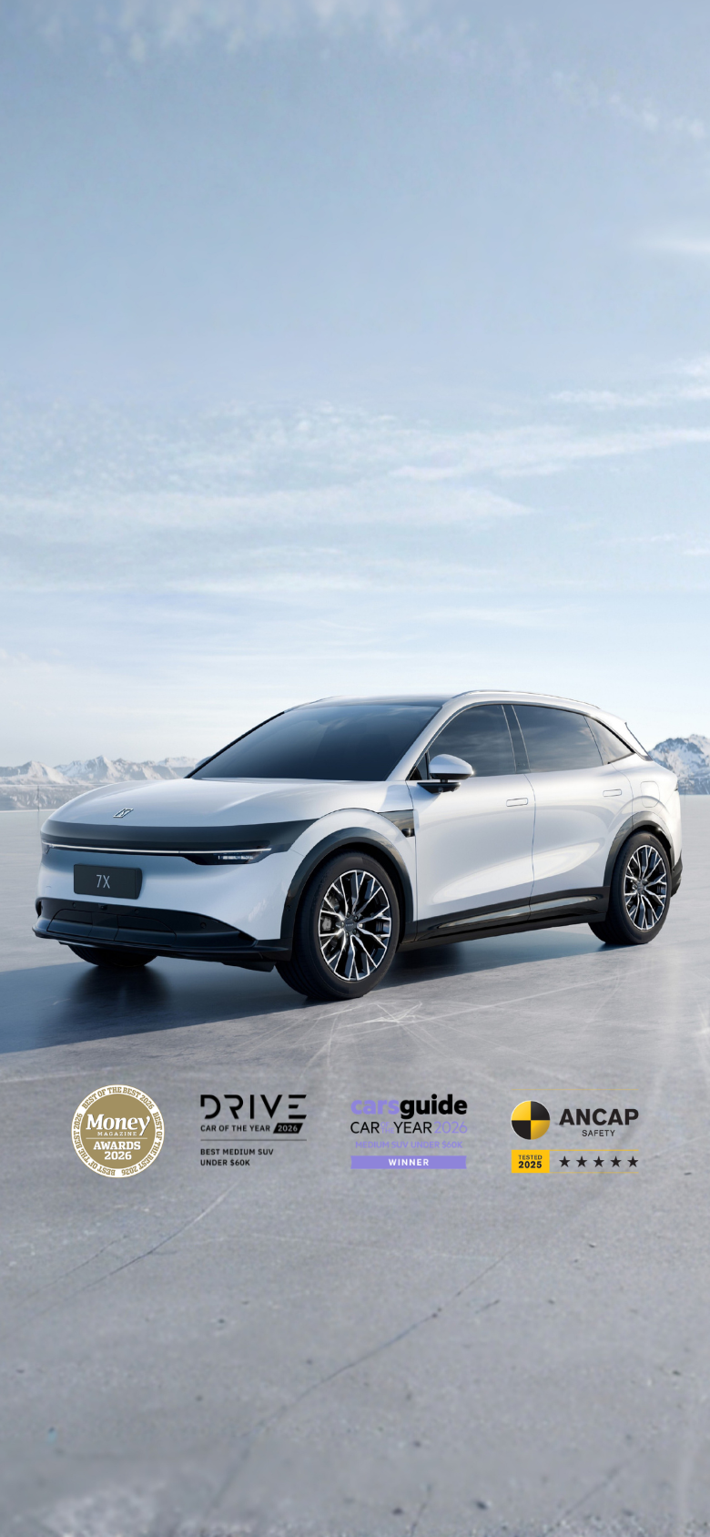 1. This is based on the longest range data of the ZEEKR 7X's ternary (NCM) lithium battery pack, and 3.8 seconds is the fastest 0-100km/h acceleration time for the intelligent long-range 4WD variant; 2. The charging data reflects the fastest charging time for the second-generation Golden Brick Battery using the V3 liquid-cooled supercharger at room temperature; 3. The configurations mentioned are not standard across all variants; please consult the product configuration table for details; 4. The materials are for reference only; the actual product delivered shall prevail. 5. The Energy Consumption and Range figures are determined by testing under static laboratory conditions. Real world Energy Consumption and Range figures will vary depending on many factors, such as individual driving style, vehicle load & condition, high voltage battery age & condition and road, traffic and weather conditions. WLTP test results are meant for the purposes of comparison amongst vehicles tested under the same procedures only.